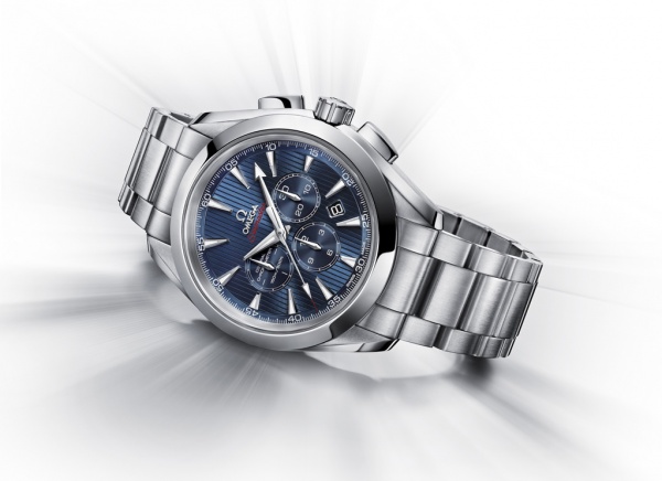 As far as we know by now, both models will feature the same blue dial, featured here on the pictures. The dial is offered in a very nice shade of blue with a distinctive vertical teak-pattern often used for many of the Omega Aqua Terra watches. This chronograph watch has a 30-minute recorder at 3 o’clock and 12-hour recorder at 6 o’clock, and a small seconds sub-dial at 9 o’clock. A nice and discrete date window is positioned between 4 and 5 o’clock.
